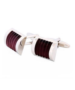 Brushed Curved Face Stainless Steel Studded Cufflinks						 Rhodium Plated Rectangle Cufflinks with Double Maroon Cat’s Eye Inlays