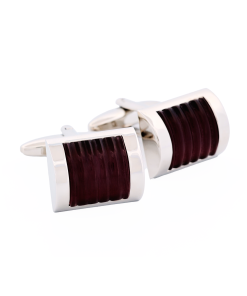Rhodium Plated Rectangle Cufflinks with Double Maroon Cat’s Eye Inlays						 Polished Cushion-Shape Stainless Steel with Black Enamel Swirl Cufflinks