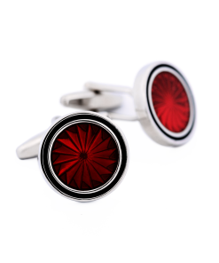 Polished Rhodium Plated Round Cufflinks with Dark Blue Enamel Inlay						 Burnished Rhodium Plated Propellor Cufflinks