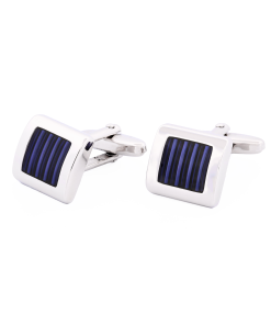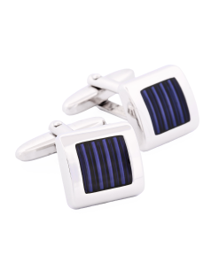 Polished Square Stainless Steel & Blue Enamel Cufflinks