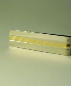 Keep your cash organised in style with this Rhodium & Gold Plated Striped Money Clip from Cudworth. This sleek accessory presents an elegant blend of rhodium and gold plating, featuring a distinctive striped design that adds a touch of sophistication to your everyday essentials. Lightweight yet sturdy, it’s the perfect compliment to the modern gentleman’s pocket.
