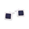 Rhodium Plated Blue Enamel Herringbone Pattern Square Cufflinks