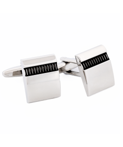 Rhodium Plated Square Cufflinks with Black Inlay