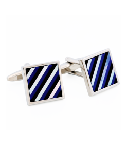 Presenting Cudworth’s Rhodium Mop & Lapis & Onyx Square Striped Cufflinks. These luxurious cufflinks, with their unique striped pattern, are the epitome of refinement and sophistication. Designed with stunning rhodium, mother of pearl, lapis lazuli and onyx, they seamlessly embody a polished and contemporary aesthetic. Perfect for gifting or as a stylish addition to your own collection.
