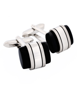 Elevate your formal wear with the Rhodium Onyx Cufflinks by Cudworth. Crafted with precision, these cufflinks showcase a timeless elegance with their glossy onyx inlay set against a gleaming rhodium base. Ideal for any occasion, they offer the perfect finishing touch to your suit or tuxedo.