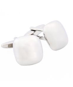 Rhodium Plated Grid-Cut Cushion Shape Cufflinks