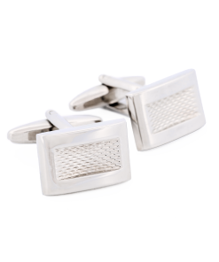 Rhodium Plated Grid-Cut Cushion Shape Cufflinks