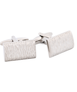 Polished Rhodium Plated Oval Cufflinks with Hammered Pattern