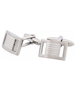 Brushed & Polished Rhodium Plated Half Striped Cufflinks