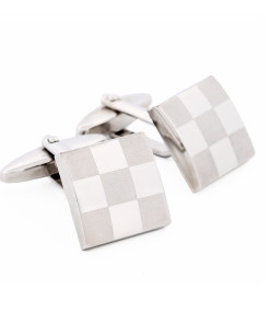 Rhodium Plated Grid-Cut Cushion Shape Cufflinks