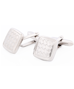 Rhodium Plated Grid-Cut Cushion Shape Cufflinks