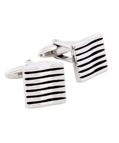 Polished Rhodium Plated Striped Onyx Cufflinks