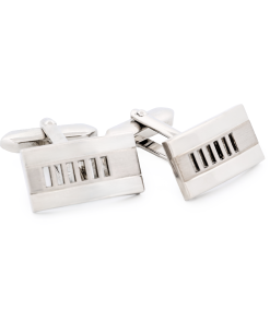 Black White Grey Bar Pattern Rhodium Plated Square Cufflinks