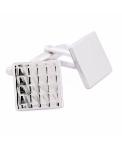 Black White Grey Bar Pattern Rhodium Plated Square Cufflinks