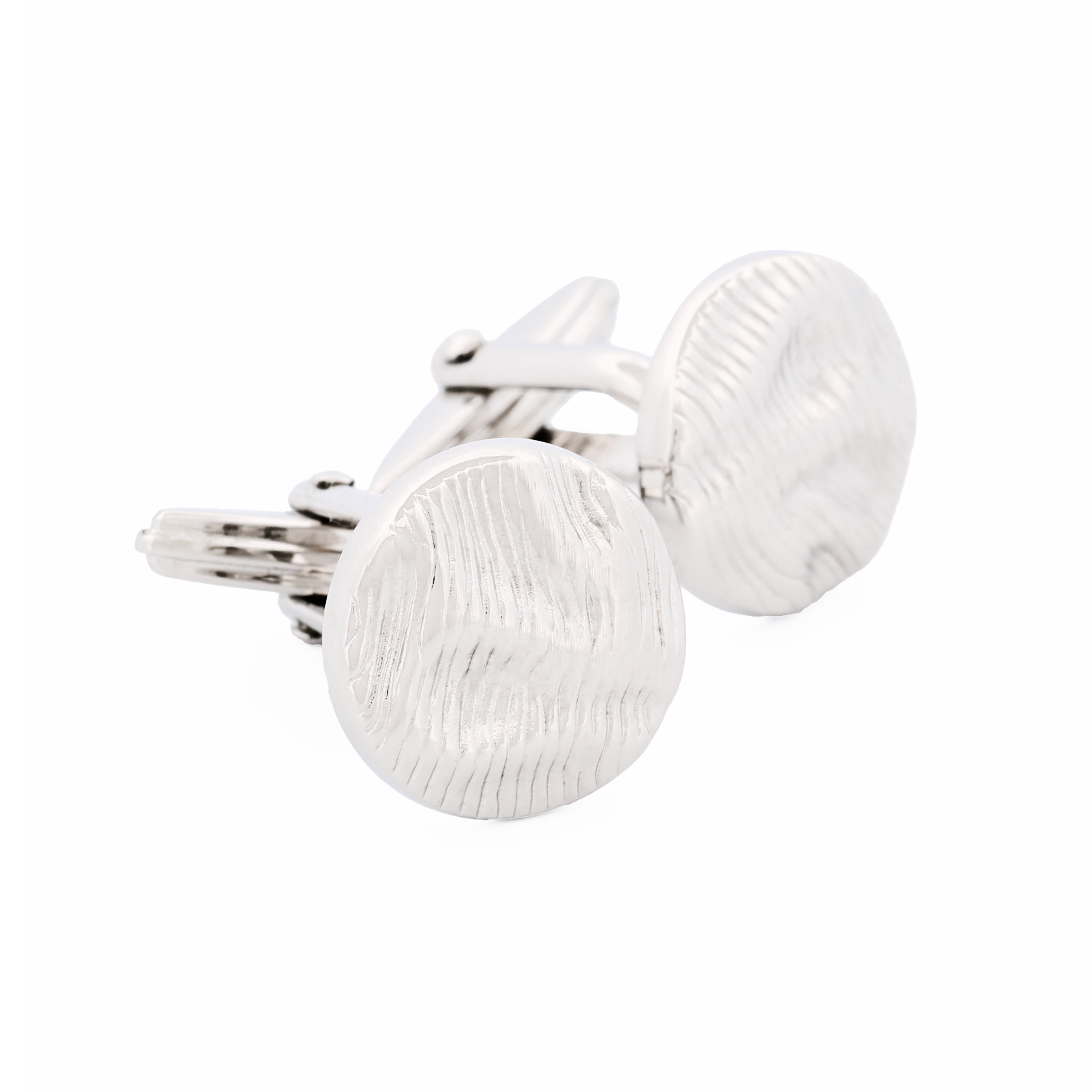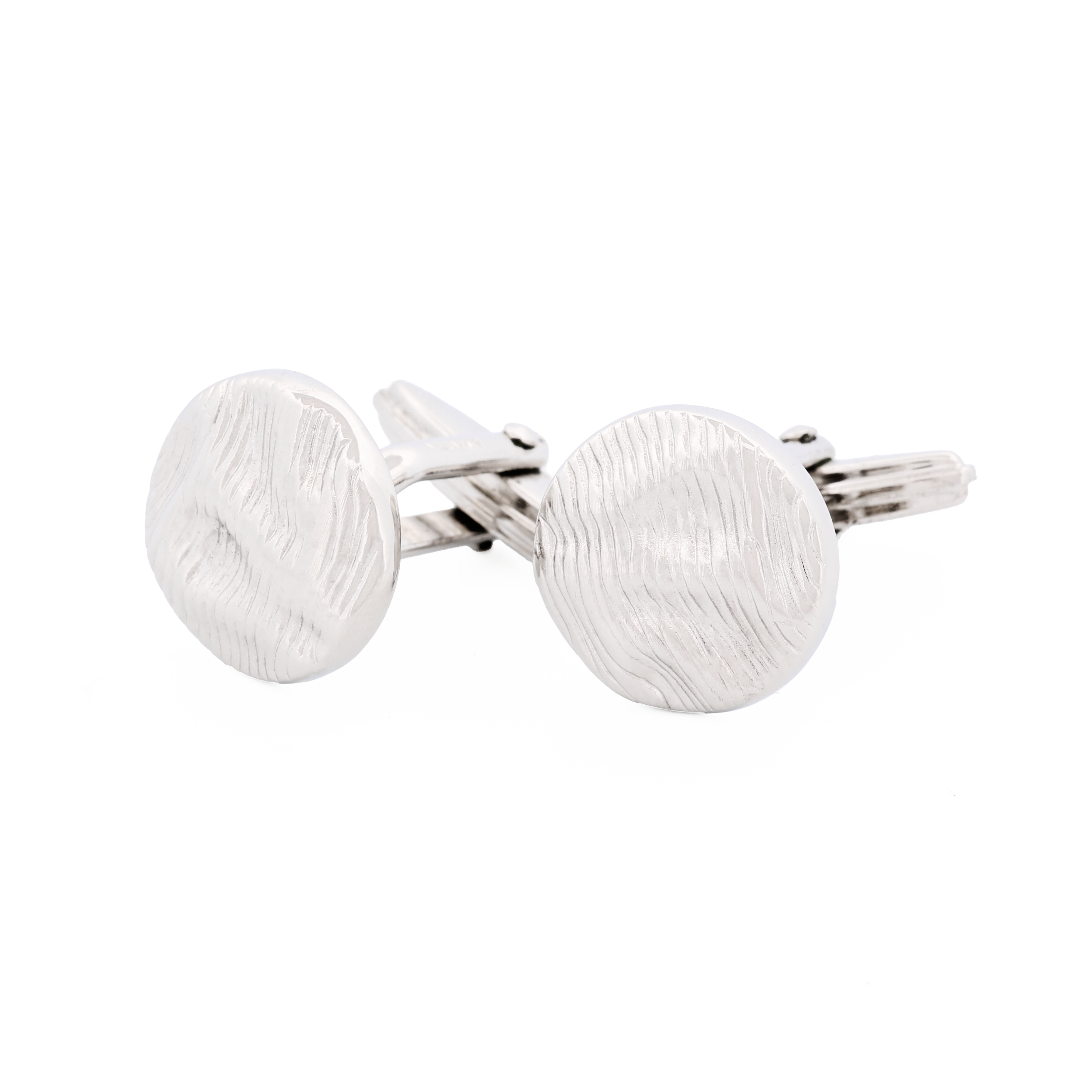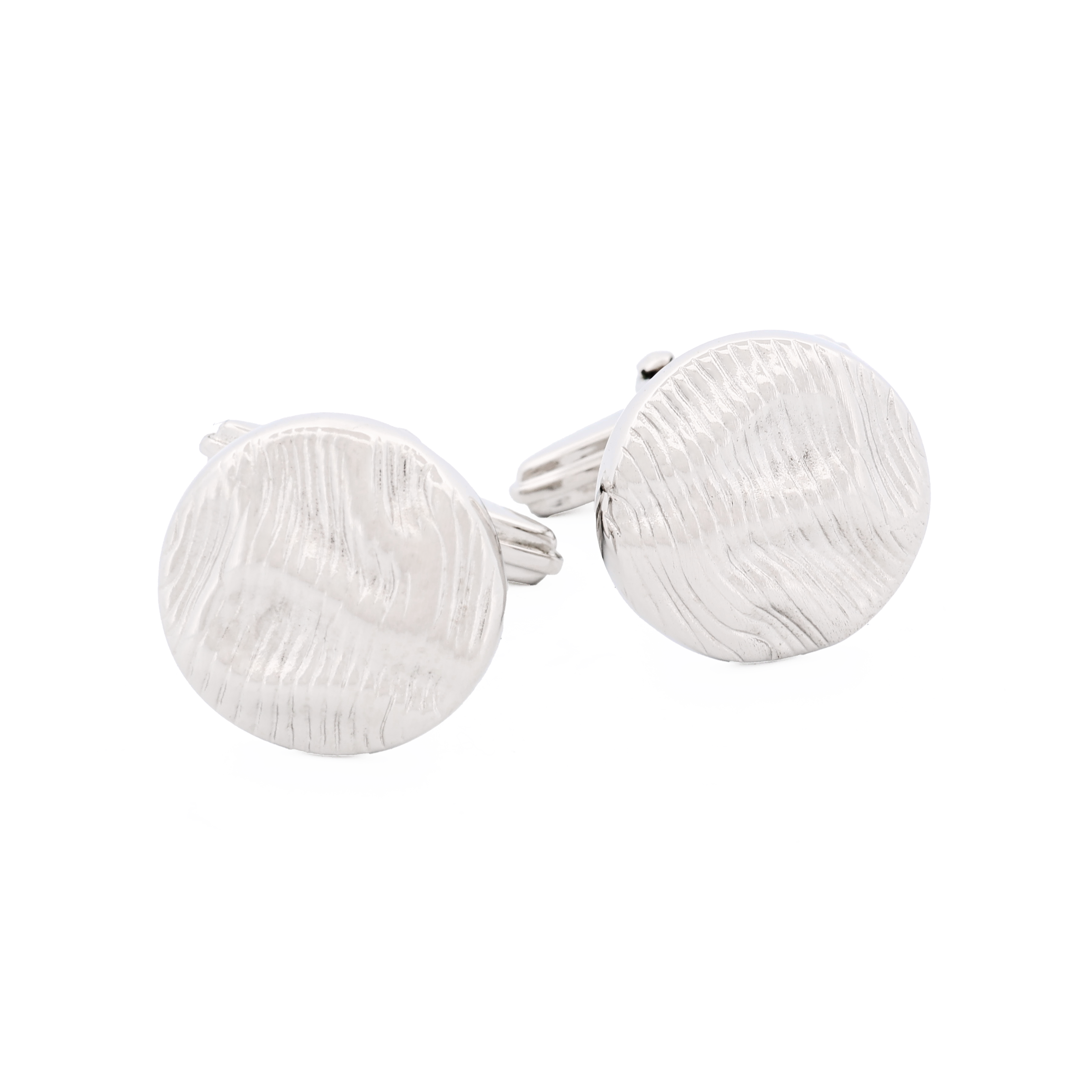Brushed Rhodium Plated Herringone Patterned Cufflinks