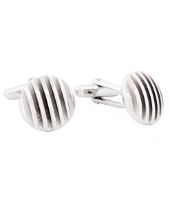 Elevate your style with the Rhodium Plated Self Striped 3D Round Cufflinks by Cudworth. These cufflinks exude an air of sophistication and class, perfect for any formal occasion. The self-striped design adds a unique touch, and the rhodium plating ensures durability and longevity. These make an ideal gift for the stylish man in your life.