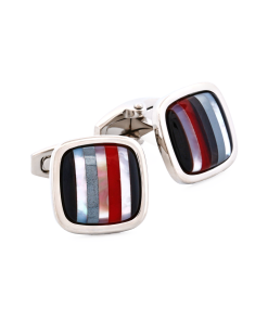 Cudworth presents a set of sophisticated cufflinks, perfect for the modern gentleman. These cufflinks are rhodium plated and feature a blend of onyx, mother of pearl (MOP), hematite and black lip red glass. The exquisite combination adds a touch of class to any outfit, making it an ideal choice for formal affairs or casual elegance.