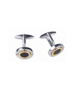 Showcase your polished style with Cudworth’s Rhodium & Gold Plated Black Enamel Round Cufflinks. These striking cufflinks feature an elegant gold frame with a glossy, black enamel centre that adds a touch of sophistication to any outfit. Perfect for both formal and casual wear, it’s an ideal addition to the modern gentleman’s accessory collection.
