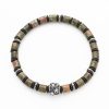 Timeless style meets vibrant elegance in the Savage Multi-Coloured Semi-Precious Stone and Ion Plated Gold Stainless Steel Disc Bracelet by Cudworth. This striking men’s bracelet features a myriad of semi-precious stones set in ion plated gold stainless steel, offering a stunning addition to any outfit. For the refined gentleman who appreciates style with a touch of flair.
