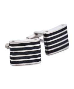 These Cudworth Stainless Steel & Black Rubber Striped Cufflinks are a stunning example of masculine elegance. Meticulously crafted, they combine a sleek, stainless steel body with distinctive black rubber stripes for a striking contrast. Ideal for dressing up any ensemble, these cufflinks exude a sophisticated yet relaxed vibe.