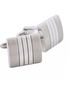 Brushed Curved Face Stainless Steel Studded Cufflinks						 Stainless Steel & Blue Wave Pattern & Mop Cufflinks