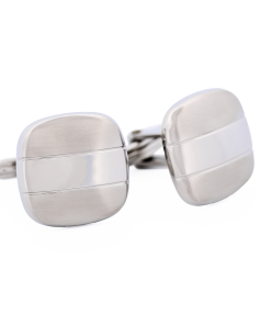Rhodium Plated Rectangle Cufflinks with Double Maroon Cat’s Eye Inlays						 Rhodium Twist Mother Of Pearl Cufflinks