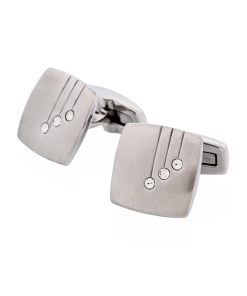 Rhodium Plated Square Cufflinks with Black Inlay						 Rhodium Plated Grid-Cut Cushion Shape Cufflinks