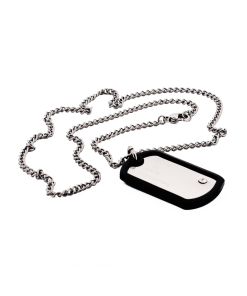 This Cudworth men’s necklace showcases a sleek and sophisticated design. It features a stainless steel dog tag suspended on a sturdy chain, complemented with a robust rubber detail for an added edge. Perfect for the modern man who appreciates understated style, this accessory is versatile enough to compliment any outfit.
