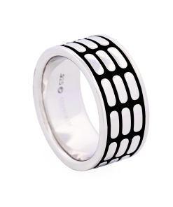 Experience a touch of modern elegance with this Cudworth Sterling Silver Black Enamel Ring. Designed for the contemporary gent, this ring boasts an exquisite blend of sterling silver and black enamel, creating an eye-catching contrast. Wear it to add a hint of sophistication to your everyday style or to make a statement at special occasions.
