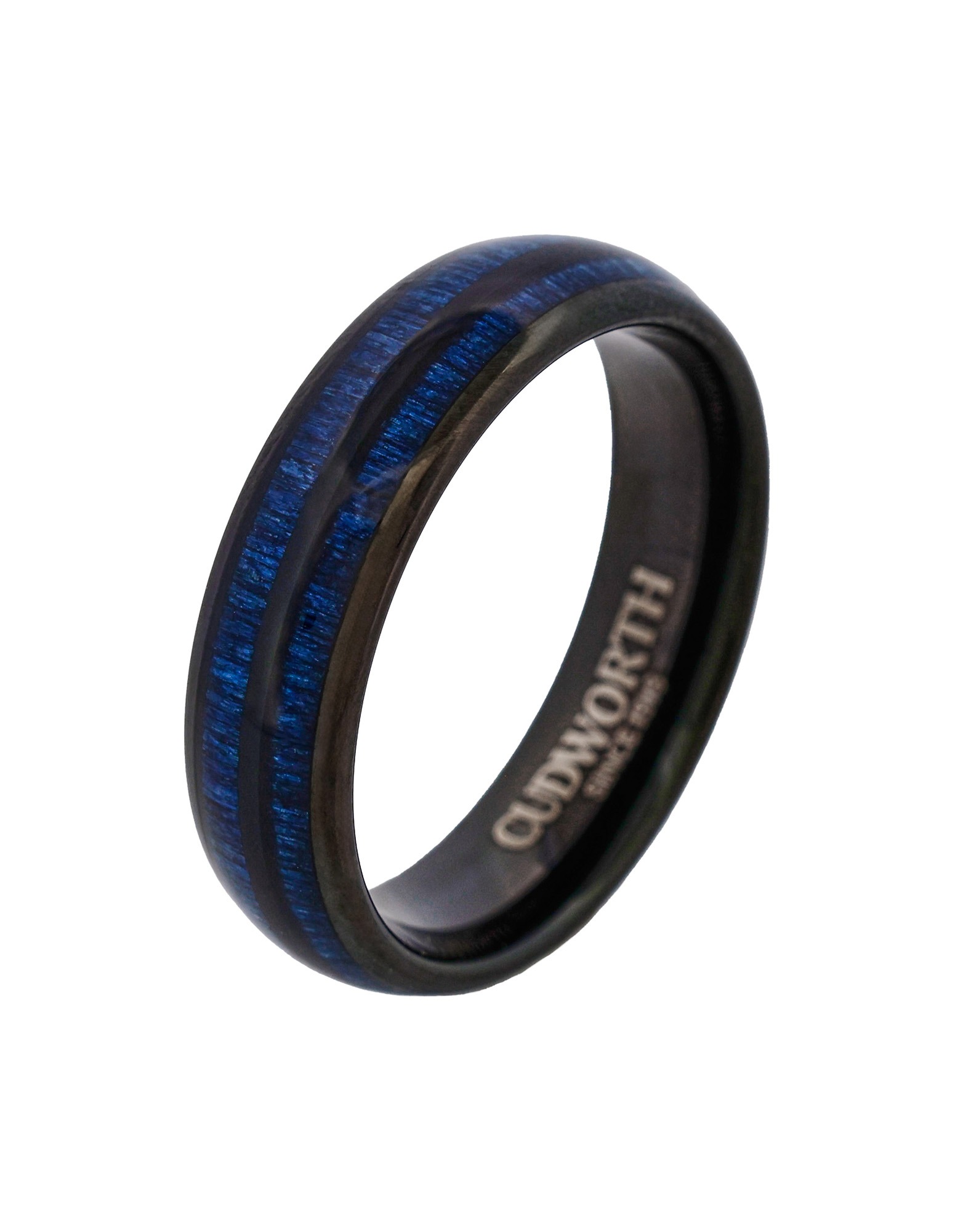 Cudworth’s Blue Volt Duo ring delivers sharp contrast and modern style. The sleek black tungsten band is energised by two vivid electric blue stripes, giving it a bold yet refined look. Durable and comfortable, it’s a versatile piece that stands out without trying too hard.